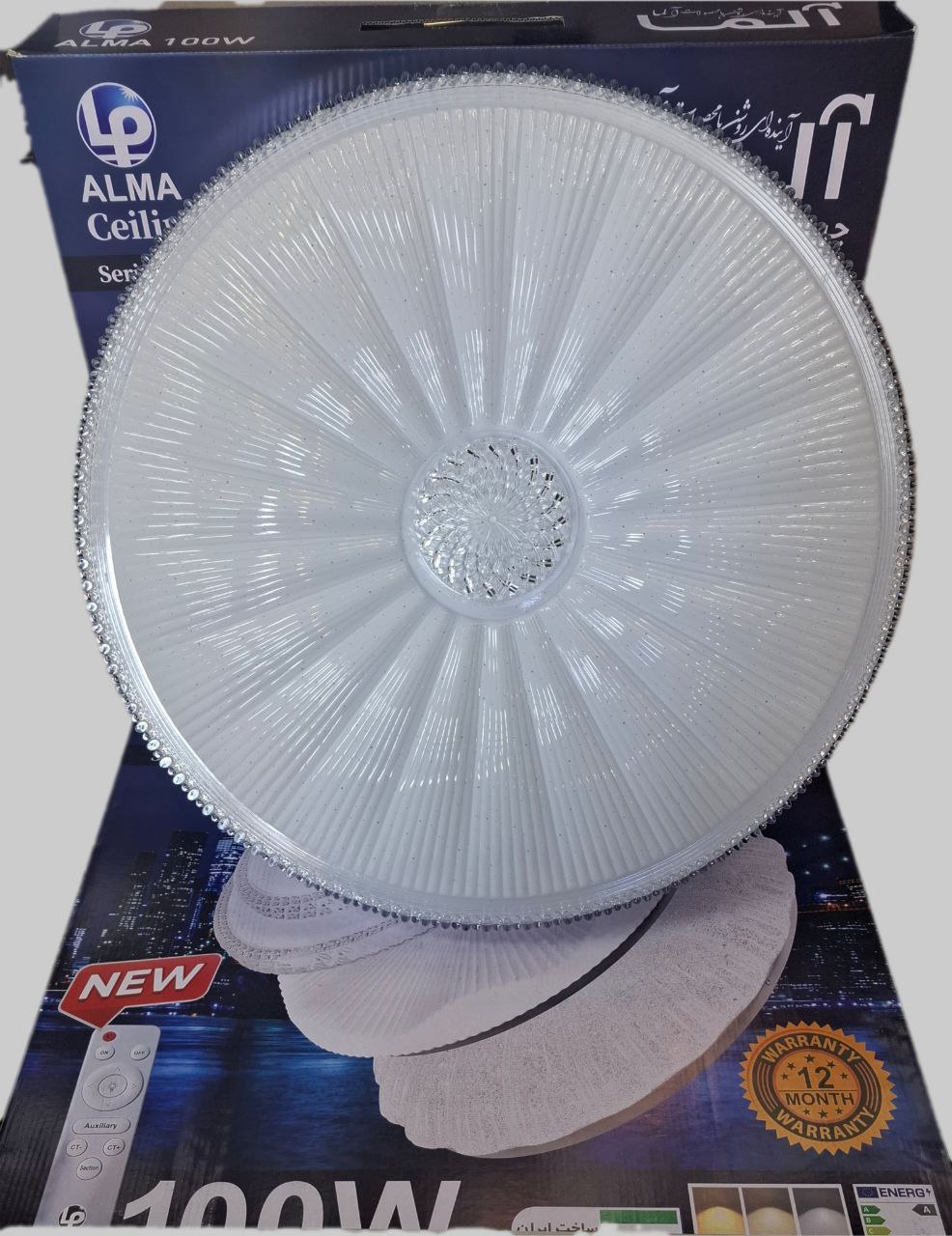 چراغ سقفی دارای 3 رنگ سفید و آفتابی و نچرال دارای ریموت کنترل قطر 50 سانت کفی آلومینیوم 1 سال گارانتی